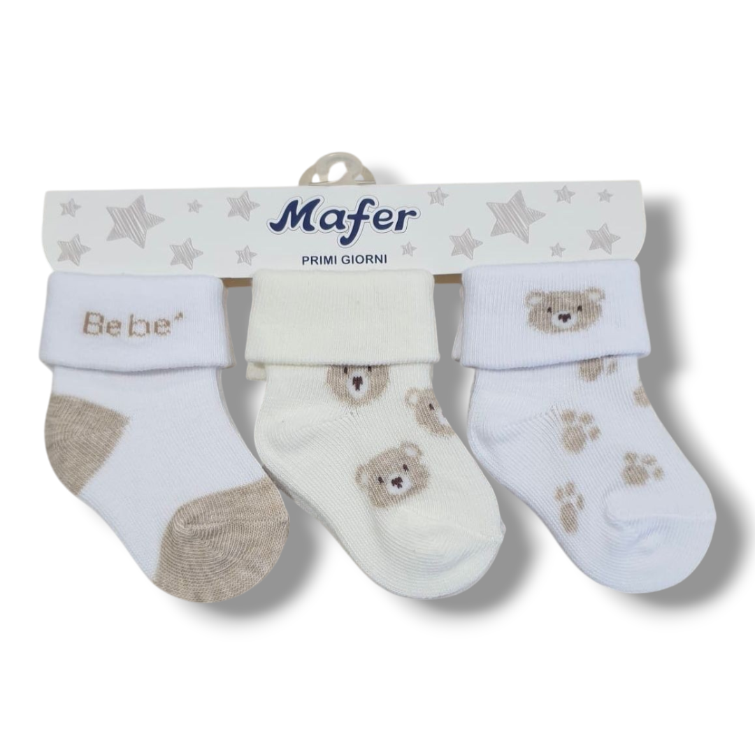 Set di 3 Paia di Calzini in Cotone per Neonati – Orsetti e Zampette