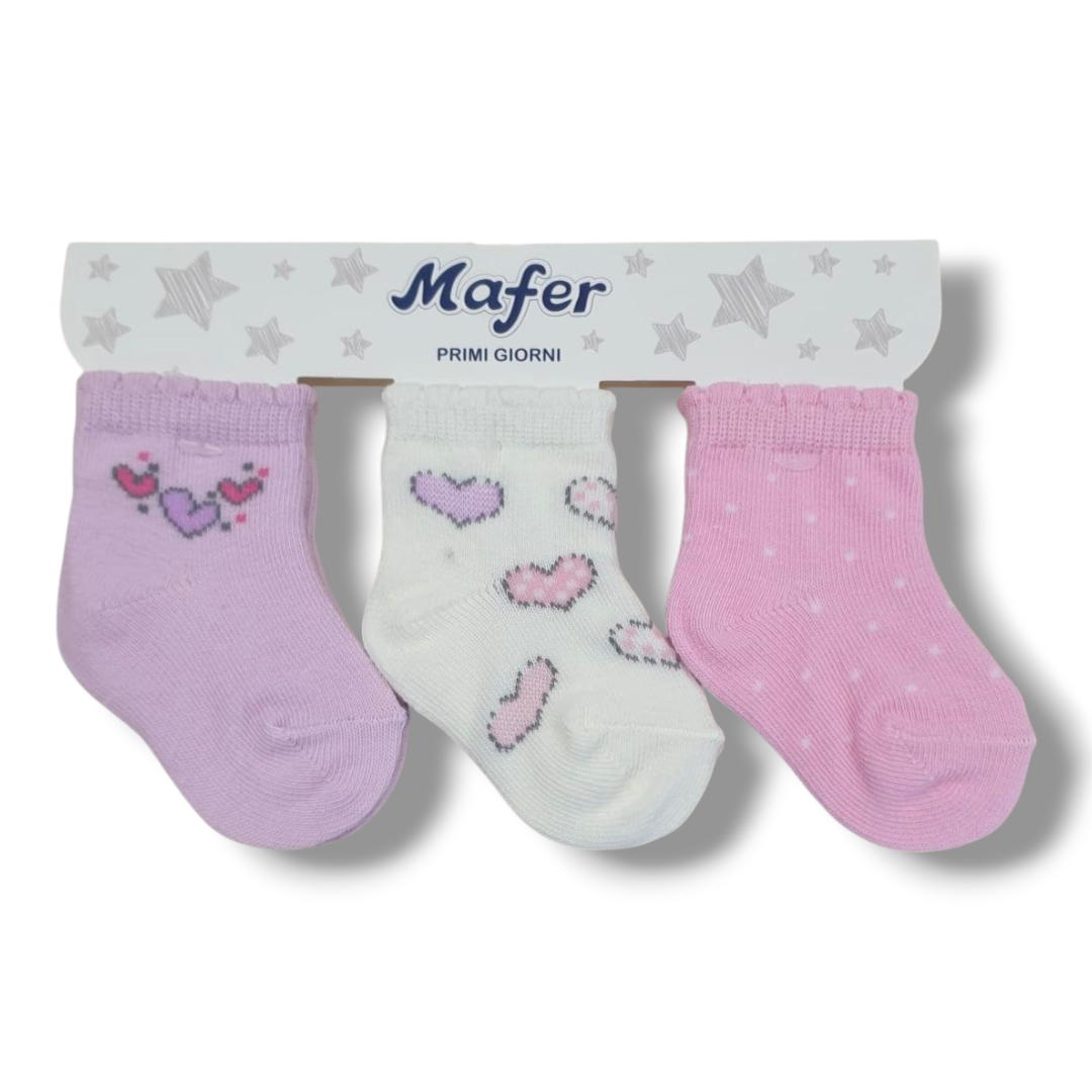 Set di 3 Paia di Calzini in Cotone per Neonata – Cuori e Dolci Dettagli