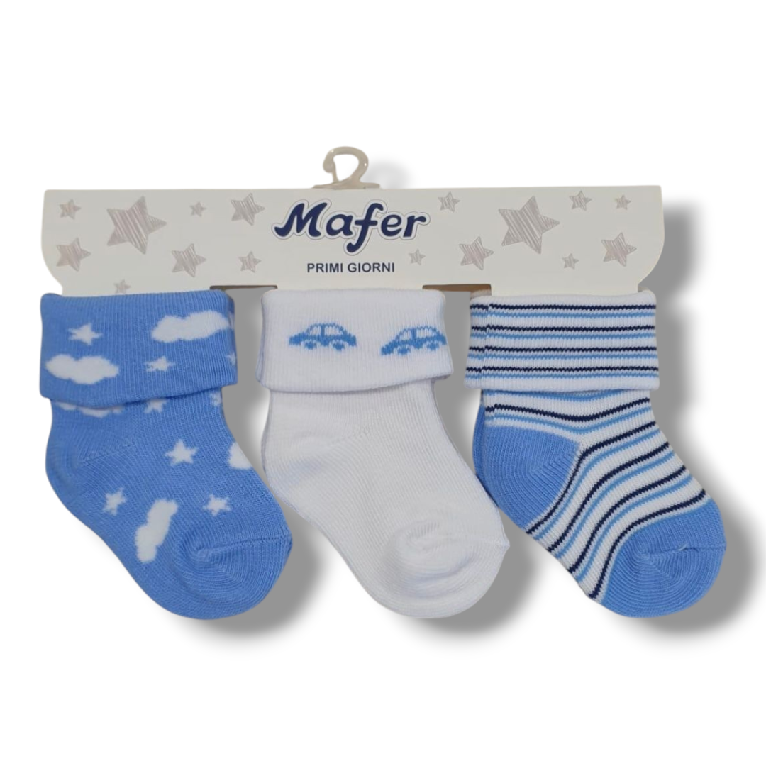 Set di 3 Paia di Calzini in Cotone per Neonati – Stile Marino