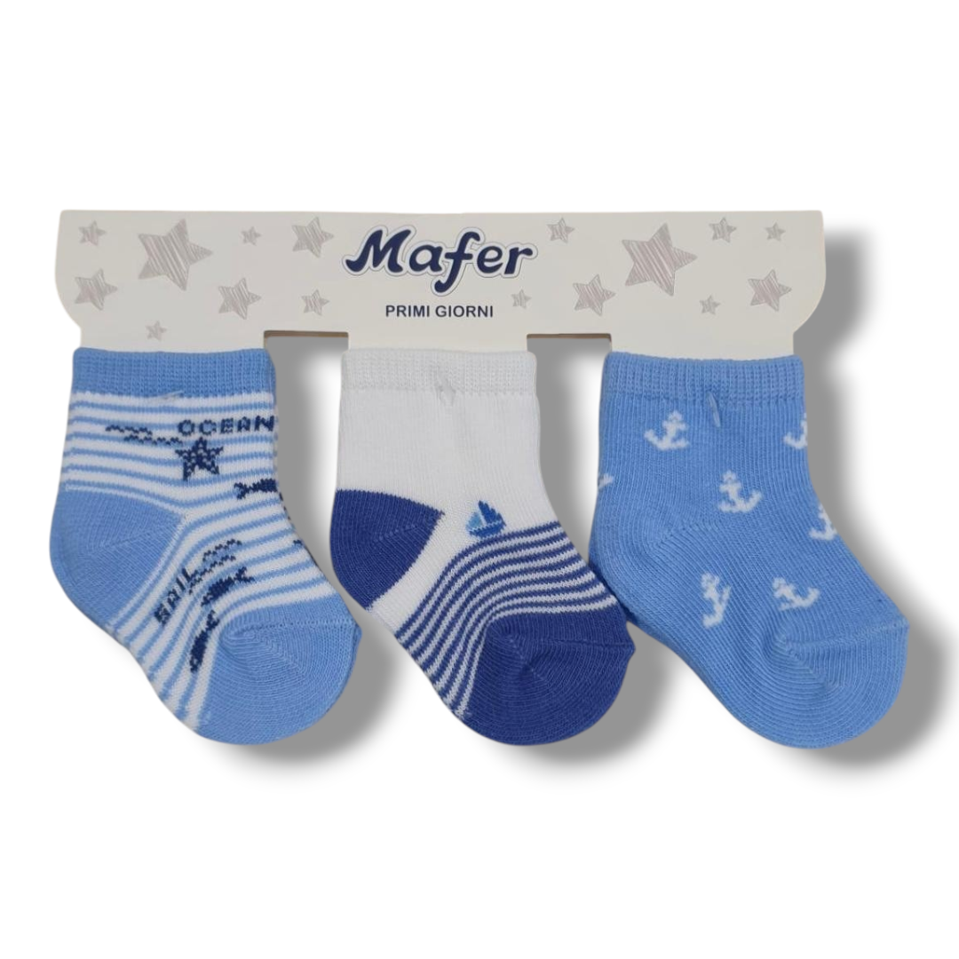 Set di 3 Paia di Calzini in Cotone per Neonati – Stile Marino