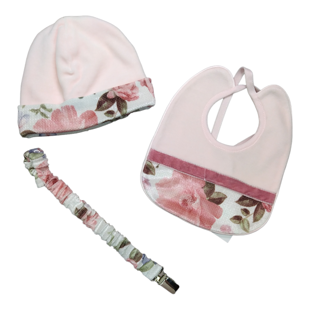 • SET 3 PEZZI  Cappellino + Bavetta + Portaciuccio