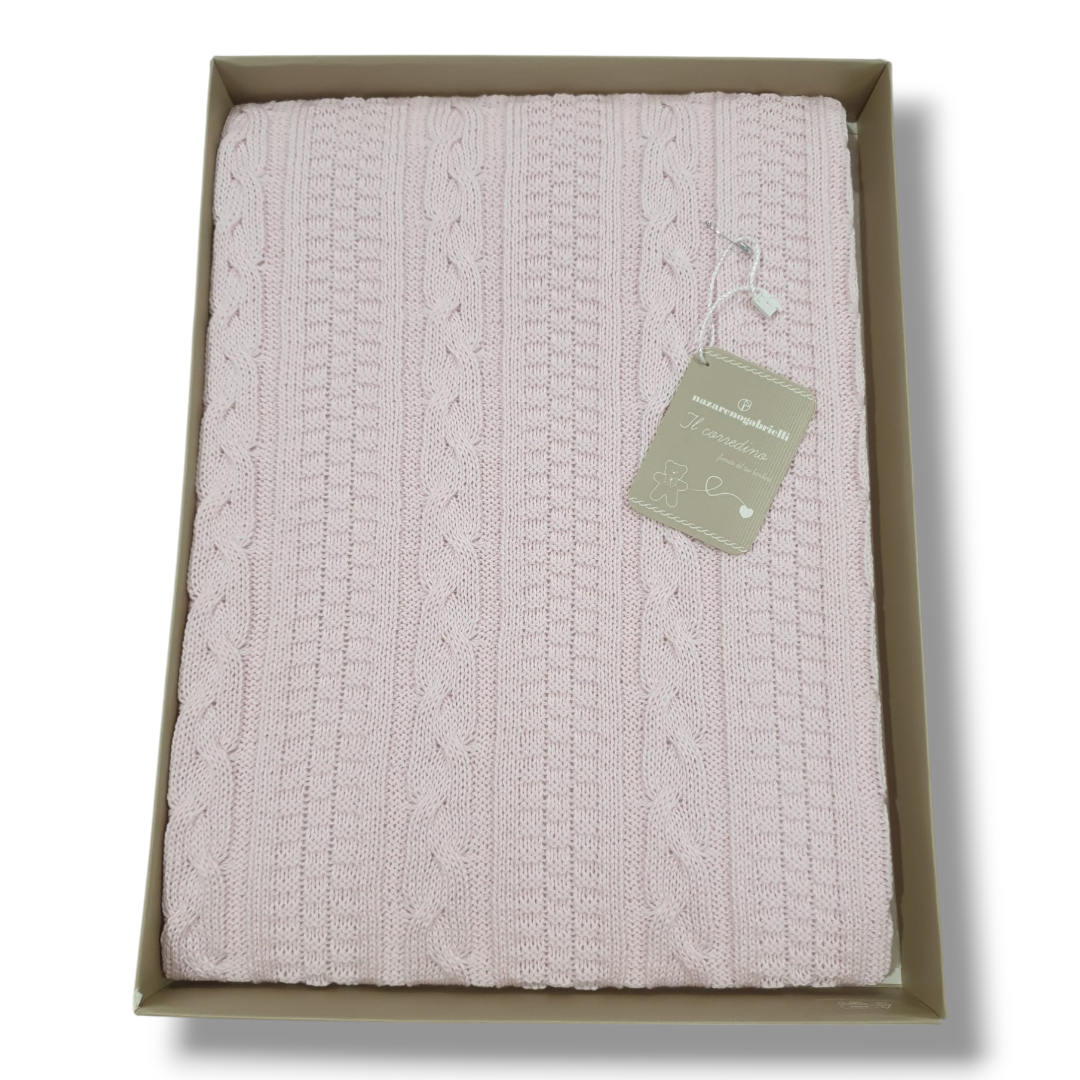 Avvolgi il tuo bambino in un abbraccio di morbidezza e comfort con questa elegante copertina in filo di puro cotone 100% della rinomata collezione Nazareno Gabrielli. Con la sua classica e raffinata lavorazione a trecce, è l’accessorio indispensabile per il corredino del tuo bebè.