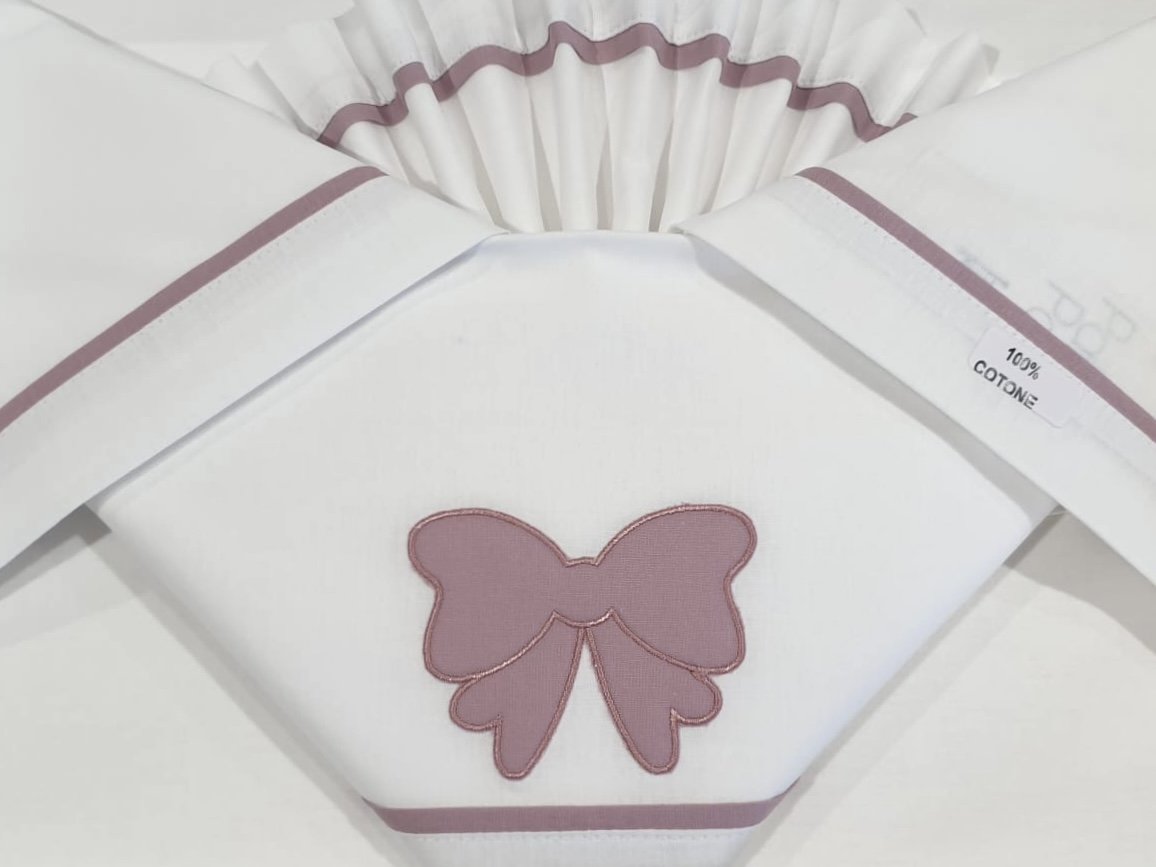 Completo lenzuola 3 pezzi in puro cotone rifinito con orsetti ricamati e bordo piquet.